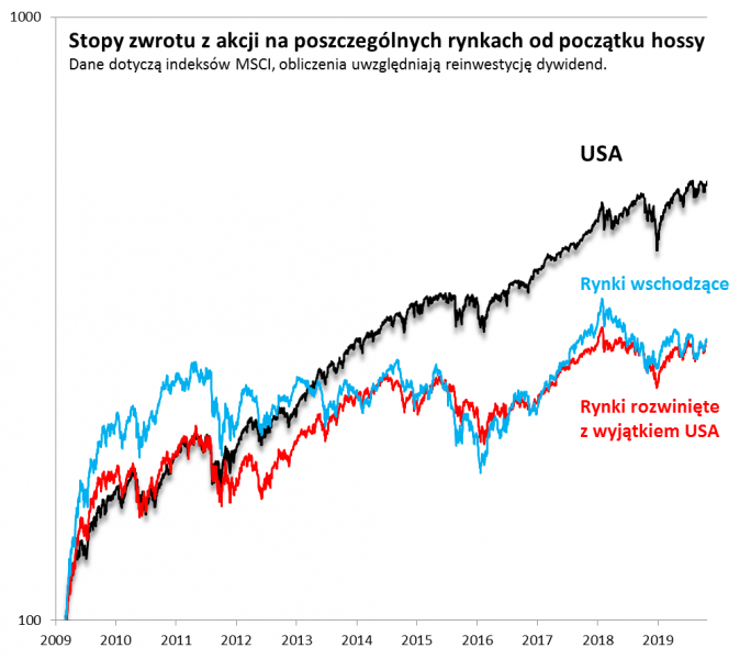 Rys. 1. Amerykańskie akcje niezaprzeczalnie liderem obecnej hossy