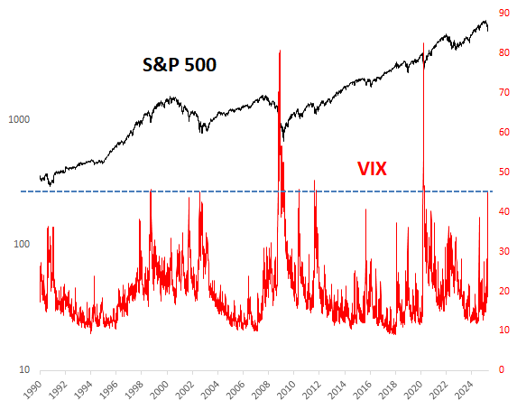 Wskaźnik VIX, popularnie zwany "indeksem strachu", wystrzelił do ok. 45 pkt. Dobra wiadomość jest taka, że przy tych poziomach czasem dochodziło do wyczerpania potencjału spadkowego na rynkach. Najsłynniejszy przykład - rok 1998, kiedy skończyło się na krótkotrwałym tąpnięciu.