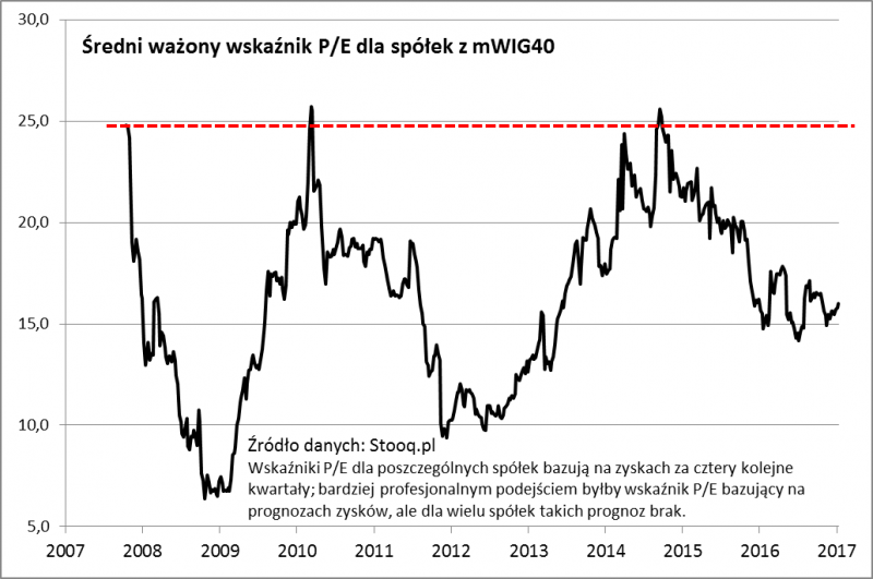 Jakkolwiek naszym zdaniem w perspektywie kolejnych tygodni należy się liczyć z podwyższonym ryzykiem korekty na GPW, to jednak na dłuższą metę akcje "średniaków" nie wydają się jeszcze skrajnie drogie. Przynajmniej według poniższej prostej miary.
