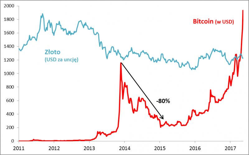 Coraz więcej uwagi mediów i komentatorów przyciąga bitcoin, czyli znana na całym świecie krypto-waluta mająca być alternatywą dla oficjalnych walut oraz złota (krypto-waluta = aktywo elektroniczne stworzone przy wykorzystaniu kryptografii, szyfrowania). Powód jest prosty - cena bitcoina w szokującym tempie bije historyczne rekordy. Od początku roku krypto-waluta ... podwoiła swą wartość rynkową względem dolara. Hiperboliczne tempo wzrostu skłania wielu do mówienia o bańce spekulacyjnej.