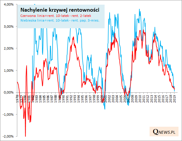 Co oznacza dalsze złagodzenie retoryki przez Fed (brak podwyżki stóp - przynajmniej w tym roku, szybszy koniec QT) dla kształtu krzywej rentowności, którą wielu analityków traktuje jako historycznie sprawdzone narzędzie wczesnego ostrzegania przed recesją?