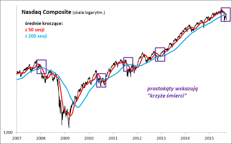 Fani analizy technicznej zauważyli, że na wykresie technologicznego indeksu Nasdaq Composite średnia 50-sesyjna spadła poniżej 200-sesyjnej, co w żargonie giełdowym zwane jest "krzyżem śmierci" (death cross). Wcześniej taki sygnał miał miejsce w przypadku S&P 500.