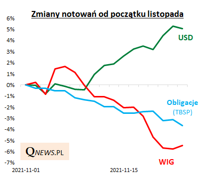 Reasumując, od dawna postulujemy obecność aktywów denominowanych w dolarze w zdywersyfikowanym portfelu inwestycyjnym jako przeciwwagę dla ewentualnych turbulencji na krajowym rynku. Rozwój wydarzeń w listopadzie przypomina, że stabilizująca funkcja USD ciągle działa. Wydaje się jednocześnie, że w średnim terminie dolar nie powiedział jeszcze ostatniego słowa - globalny indeks USD jest dopiero w połowie drogi od cyklicznych dołków do szczytów (na razie może czas na odreagowanie?).