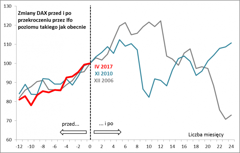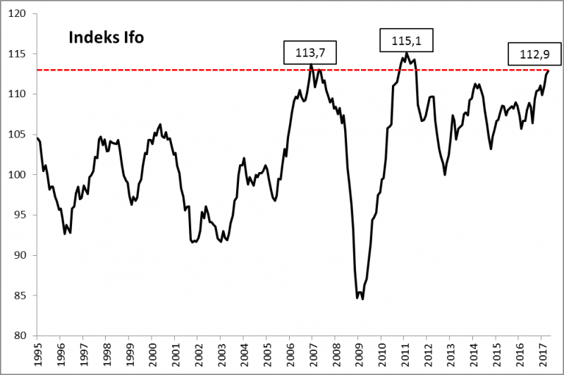 Rzut oka na wykres indeksu Ifo pokazuje, że obecne odczyty należą już do najwyższych w historii. Wyższe były jedynie w latach 2006-2007 oraz 2010-2011.
