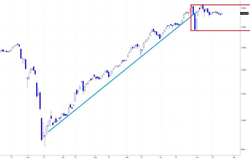 Po spektakularnym rajdzie i szybkim odrobieniu z nawiązką całych strat z "korona-krachu", kojarzony z małymi spółkami (aczkolwiek w praktyce gromadzący również dość duże firmy) indeks sWIG80 najpierw przeżył gwałtowną korektę spadkową (końcówka lipca), a ostatnio utkwił w tzw. trendzie bocznym.