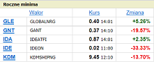 Przykładowo spółki, które na ostatnich trzech sesjach ustanowiły nowe 52-tygodniowe maksima to (W kolejności alfabetycznej): Energa, Euco, Gorenje, ING BSK, KRKA, Pekaes, Polna, Tauron, TelForceOne, Teresa, Votum. Nowe minima ustanowiły z kolei: Alma, DSS, Eurotel, FAM, Gant, Global Energy, Idea TFI, Ideon, KDM Shipping, Milkiland, PBO Anioła, Presco.