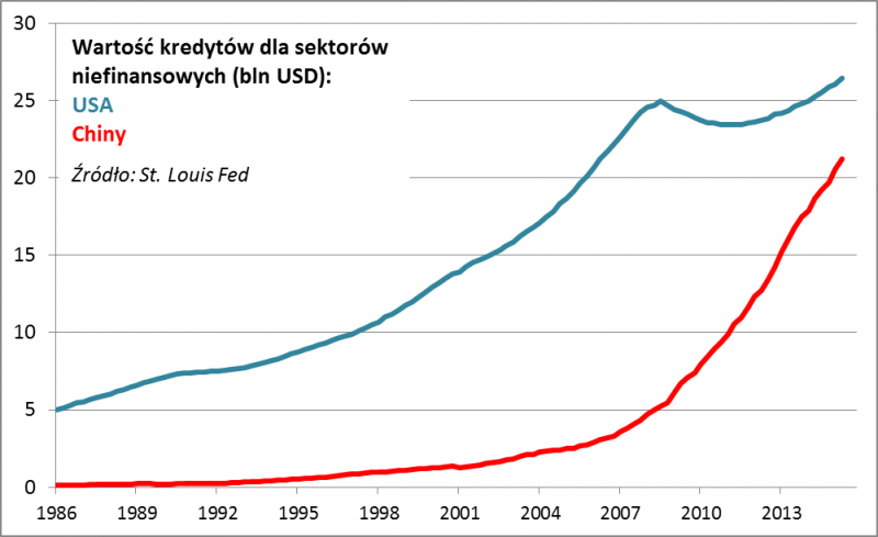 Niedawno znany z szeroko zakrojonych spekulacji walutowych George Soros uznał, że druga największa gospodarka świata skazana jest na "twarde lądowanie", co wywołało ostrą reakcję chińskiej administracji. W ostatnich dniach z kolei finansowy świat obiegł list do klientów, w którym Kyle Bass - zarządzający funduszem hedgingowym, który fortunę zbił na trafnym obstawieniu kryzysu "suprime" w latach 2006-2007 - wyliczył swe argumenty za mocną dewaluacją juana. Bass wskazuje, że na skutek spowolnienia gospodarczego narasta problem złych (niespłacanych) kredytów, a ponieważ przez lata ekspansji chiński system bankowy rozrósł się do "monstrualnych" rozmiarów (podaje 34 bln USD aktywów = 340% PKB), to straty banków mogą zagrozić stabilności finansowej Chin. Jego zdaniem straty te mogą stać się nawet cztery razy większe niż straty amerykańskich banków w trakcie kryzysu subprime. Dostępne nam dane potwierdzają, że przez lata - szczególnie po 2008 r. - chińskie instytucje finansowe przeżyły bezprecedensowy boom. Dużo trudniej potwierdzić trafność wyliczeń Bassa odnośnie potencjalnych strat - podawane liczby spotkały się z krytyką wśród innych ekspertów.