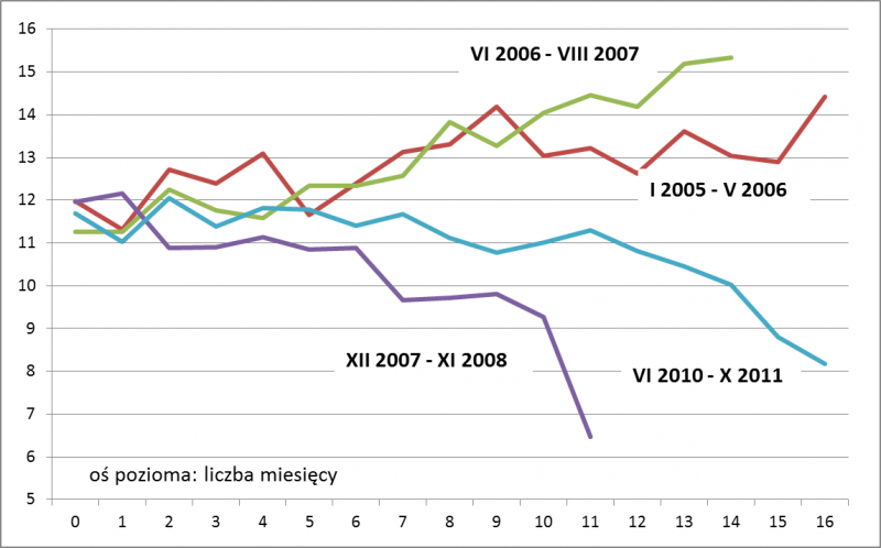 Rys. 2. Co działo się z P/E po spadku poniżej poziomu 12