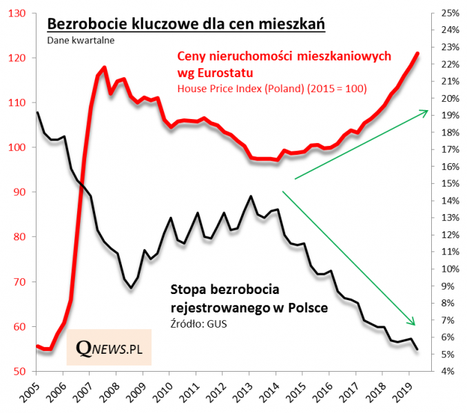 Dalsza logiczna konsekwencja jest taka, że tendencja zwyżkowa na rynku nieruchomości skończy się zapewne wtedy, gdy zacznie zmieniać się trend na rynku pracy.