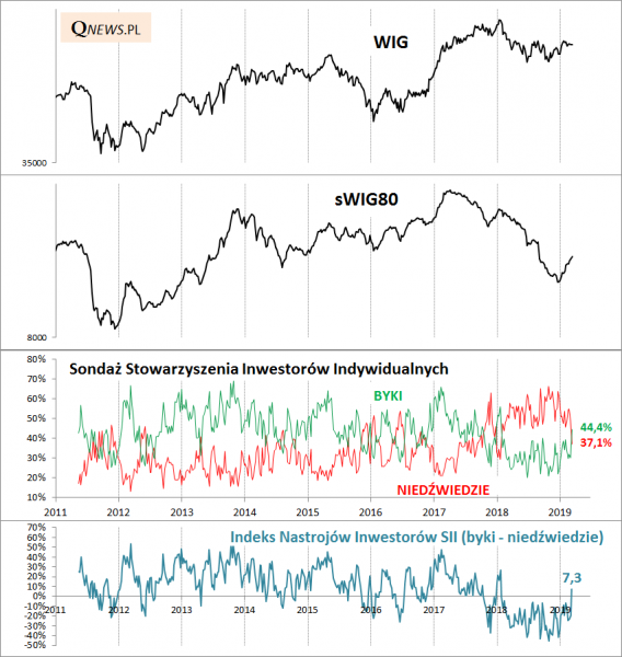 Jeśli wierzyć cotygodniowemu sondażowi Stowarzyszenia Inwestorów Indywidualnych, nastroje na GPW ulegają systematycznej poprawie wraz ze wspinaczką notowań, szczególnie całej rzeszy małych spółek.
