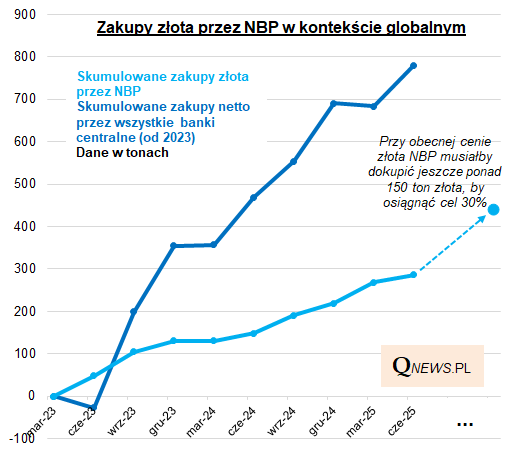 Przypomnijmy, że dotychczasowy cel obowiązywał oficjalnie od lutego 2024, zaś nieoficjalnie już od 2021, kiedy został zasygnalizowany przez prezesa A. Glapińskiego (choć zakupy metalu ruszyły dopiero w II kw. 2023).