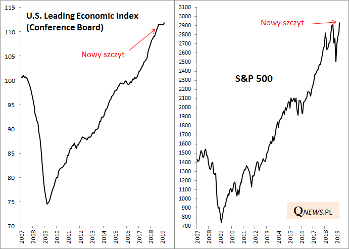 Co ciekawe zbiegło się to w czasie z publikacją rekordowego odczytu bacznie obserwowanego wskaźnika ekonomicznego Conference Board. Nowy szczyt LEI odczytujemy jako sygnał, że amerykańska gospodarka nie podąża na razie ścieżką ku recesji, tak jak to miało miejsce np. na przełomie lat 2007/2008 (choć oczywiście znalazłyby się zapewne konkurencyjne wskaźniki makroekonomiczne, których zachowanie nie jest tak jednoznaczne).