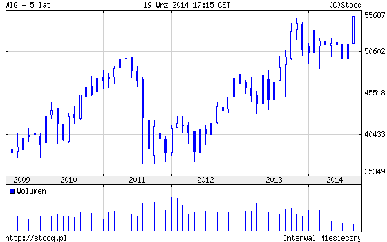 Któż by się tego spodziewał? Pomimo napięcia geopolitycznego, sankcji i kontr-sankcji, słabszego wzrostu gospodarczego, wygórowanych cen (np. banki notowane są przy wskaźniku P/E15 rzędu 14-16,5) itd. nasz rynek właśnie ustanowił nowy rekord hossy. Od piątku wynosi on 55,6 tys. punktów dla WIG.