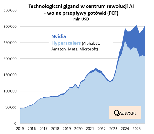No cóż, wszystko to pokazuje, że - patrząc na największe spółki technologiczne w centrum rewolucji AI jako całość - tzw. cash flow po skorygowaniu o rekordowy CAPEX chyba nie poprawia się tak, jak można by oczekiwać. Przynajmniej na razie.