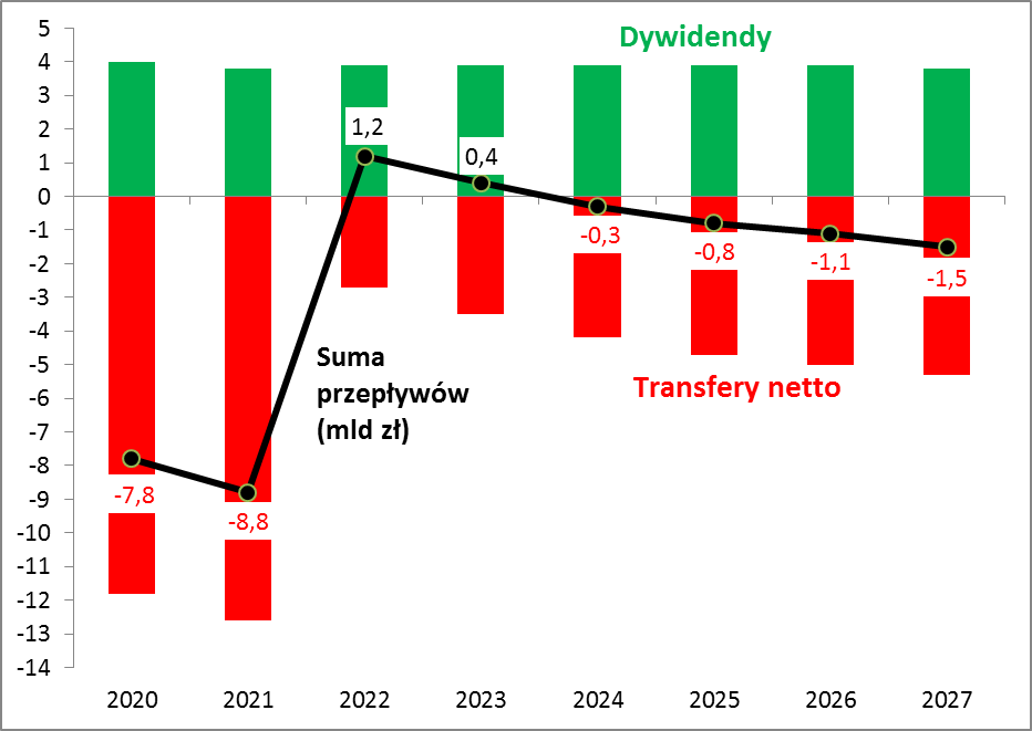 Rys. 1. Opłata przekształceniowa odchudzi aktywa przekazane z OFE do IKE, ale potem przepływy netto w „nowych OFE” będą wyglądały lepiej niż obecnie dzięki likwidacji suwaka