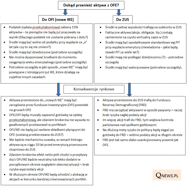 Ogłoszenie przez rząd kolejnej wersji likwidacji OFE i zagospodarowania zgromadzonych w nich aktywów wywołało skrajne opinie i emocje. Tak jak to bywa z praktycznie każdą decyzją o charakterze politycznym, i te zapowiedzi trudno jednoznacznie ocenić w kategoriach czarne/białe. Wątpliwości nie pozostawia natomiast jedna kwestia - sprawa jest mocno złożona i wielowątkowa. Poniżej staramy się rozebrać ją na części pierwsze z punktu widzenia zarówno uczestników OFE, jak i całego rynku kapitałowego.