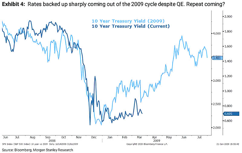 Stratedzy Morgan Stanley sugerują, że scenariusz byczy jest ciągle możliwy i wskazują na rok 2009, kiedy po początkowej ostrożności później rentowności papierów skarbowych zaczęły mocno rosnąć w ślad za akcjami.