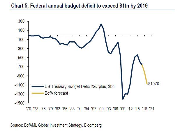 Trzeba jednocześnie brać pod uwagę, że konkurencyjne dla akcji obligacje w USA mogą być cały czas pod presją. Coraz bardziej ekspansywna polityka fiskalna prezydenta Trumpa może zdaniem Bank of America/Merrill Lynch doprowadzić już w przyszłym roku do ogromnego deficytu budżetowego na poziomie biliona (!) dolarów.