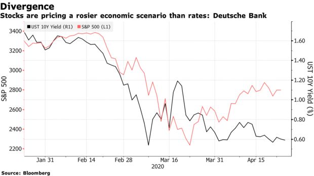 Rzecz w tym, że rynek obligacji - często określany jako "mądrzejszy" jeśli chodzi o diagnozowanie sytuacji w gospodarce - w przeciwieństwie do rynku akcji, który ma za sobą kilka tygodni żywiołowego odreagowania, nie wysyła póki co sygnałów wiary w nadchodzące ożywienie ekonomiczne. Ciągle dyskontuje głęboką recesję. Rentowności np. 10-letnich obligacji amerykańskich szorują po dnie.