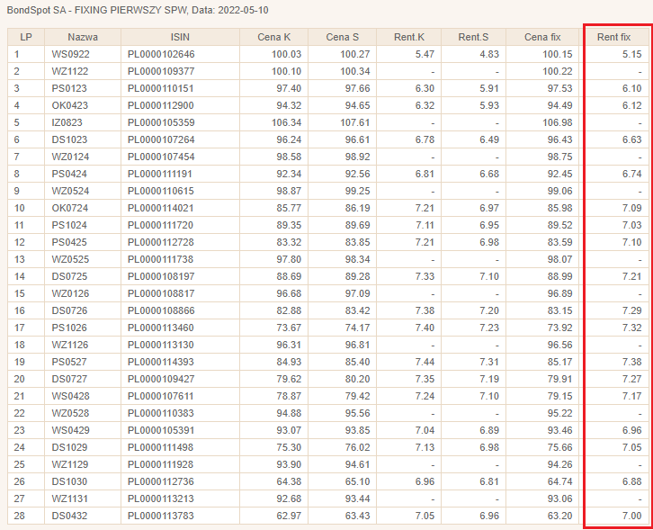 W tabeli notowań, np. z hurtowego rynku BondSpot, coraz częściej wypatrzeć można rentowności na poziomie 7% lub wyższym. Wartość ta pojawia się już począwszy od obligacji z nieco ponad dwuletnim terminem wykupu, a skończywszy na 10-letnich.