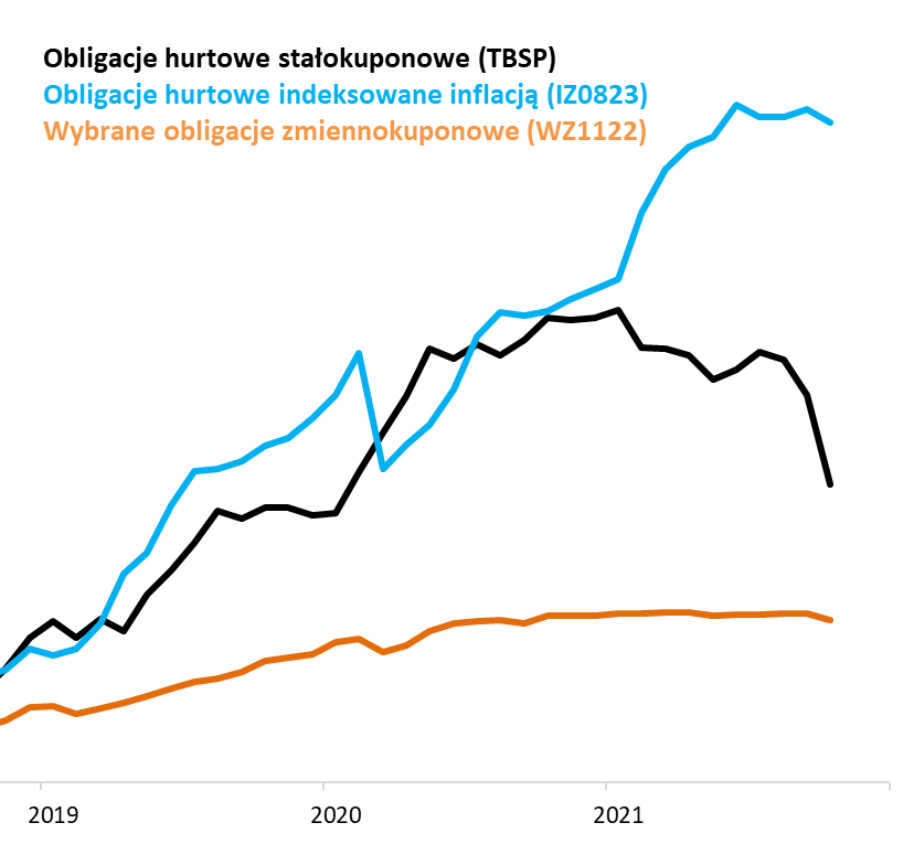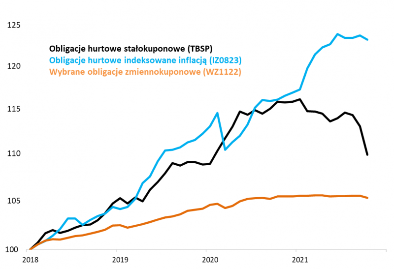 Polskie stałokuponowe obligacje skarbowe jeszcze nigdy na przestrzeni ponad 20. lat nie przeżyły tak głębokiej przeceny. Ale rynek obligacji to również papiery o zmiennym oprocentowaniu oraz – triumfujące w tym roku – indeksowane inflacją.