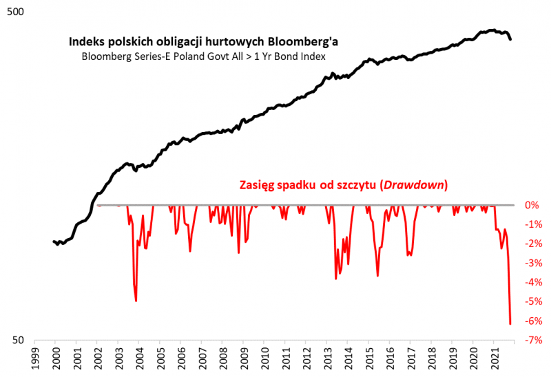 Rys. 1. Rekordowo głęboka korekta spadkowa indeksu obligacji stałokuponowych