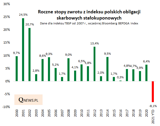 Rys. 1. Rekordowo słaby rok w historii polskich obligacji stałokuponowych