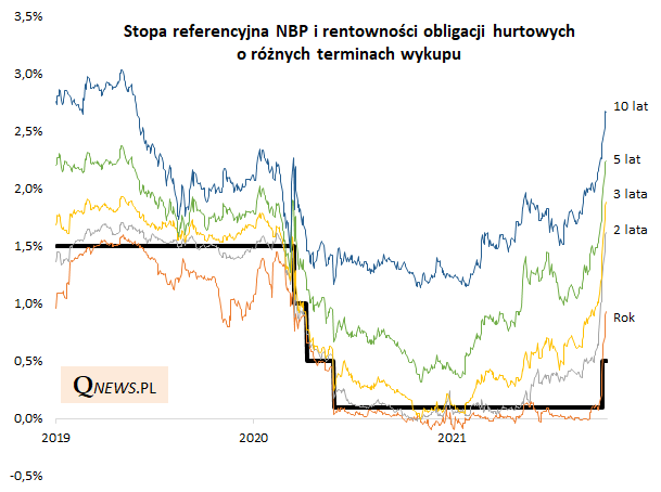 Optymiści przekonują z kolei, że rynek przereagował oczekiwane podwyżki stóp procentowych - może świadczyć o tym fakt, że rentowności większości serii obligacji zawędrowały do poziomów, które wcześniej były notowane przy stopie NBP w wysokości 1,5%, podczas gdy obecnie nawet po październikowej podwyżce wynosi ona dopiero 0,5%.