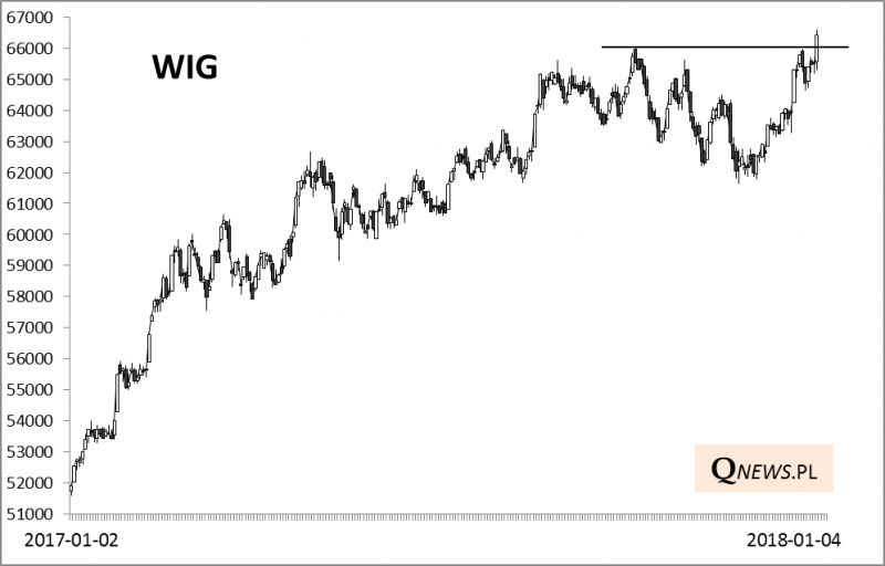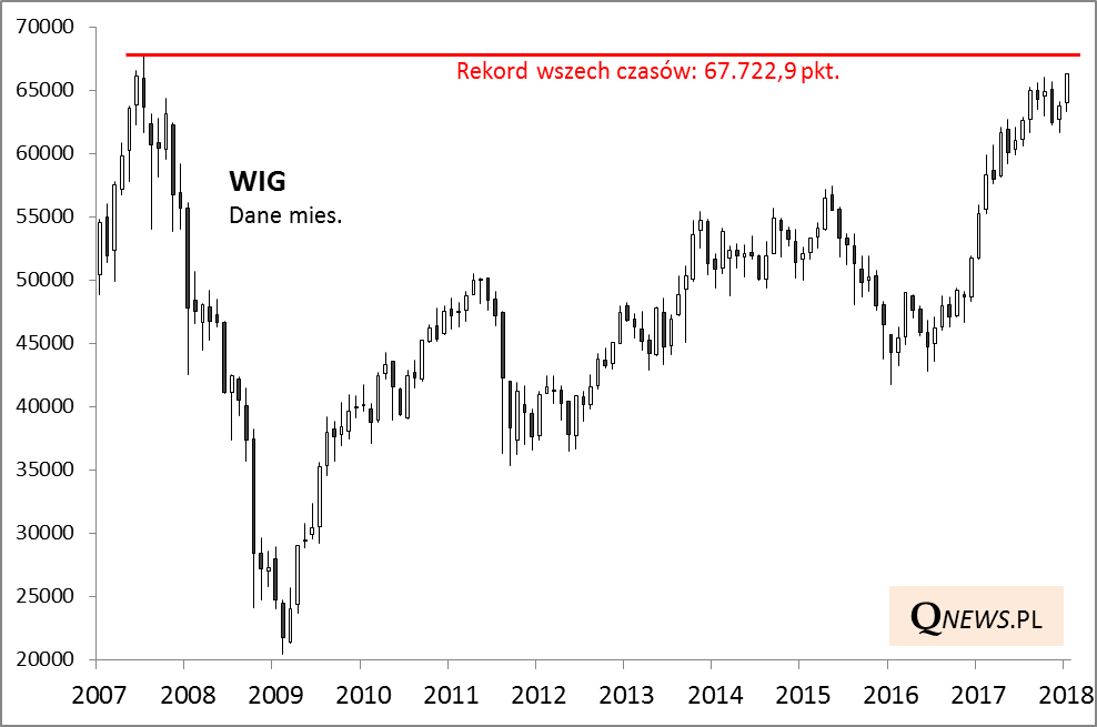 Tym samym zostało ustanowione nowe maksimum w ramach hossy trwającej z przerwami od 2009 roku. Wznawiamy jednocześnie odliczanie do rekordu wszech czasów z 2007 roku, które zostało przerwane przez korektę w IV kw. ub.r.