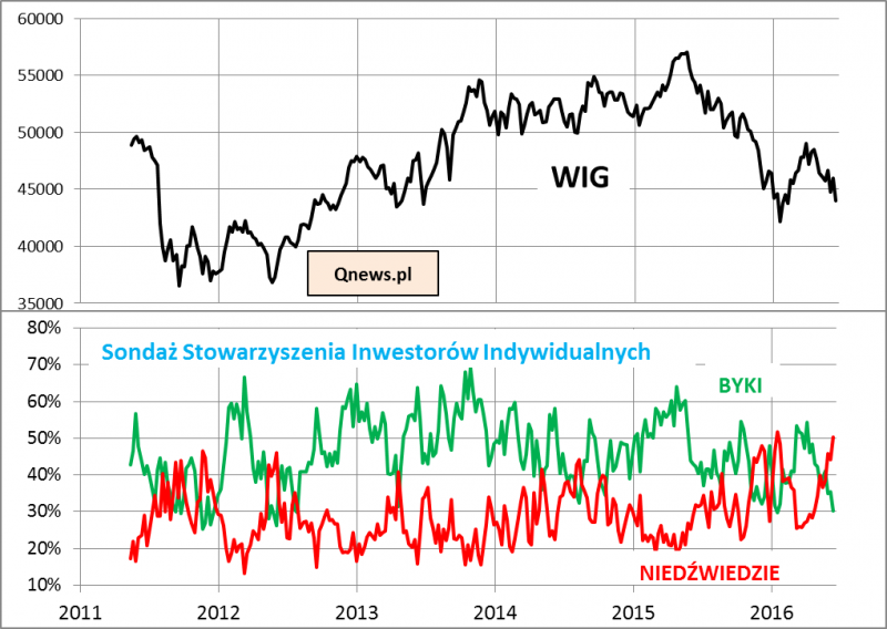 - odsetek byków (optymistów) spadł do 30,2% - to jeden z najniższych w historii (rekordowo nisko był w 2011 r. - w okolicach 24%);