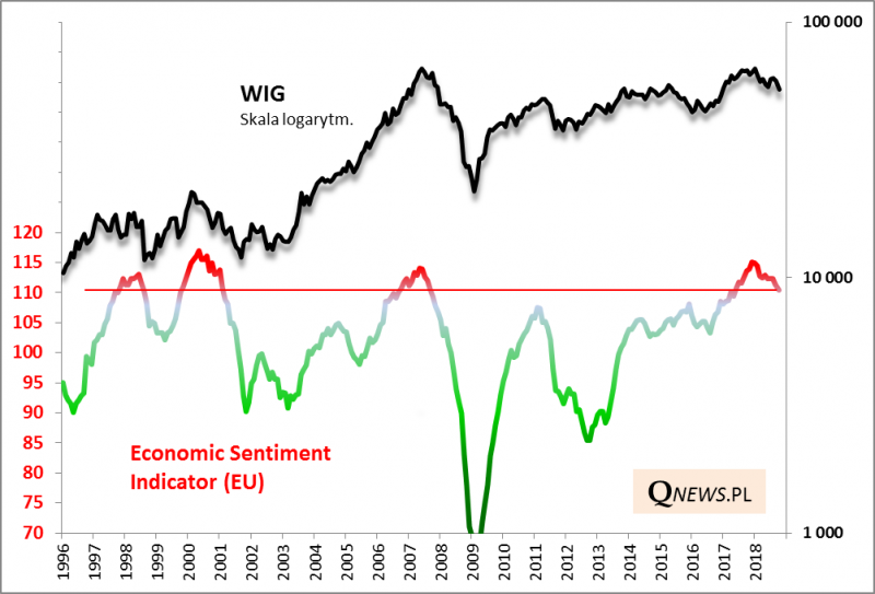 Unijny Economic Sentiment Indicator (ESI, wskaźnik nastrojów ekonomicznych), podobnie jak opisywany wcześniej PMI, sygnalizuje postępującą zadyszkę w europejskiej gospodarce. W odniesieniu do całej UE wskaźnik spadł w październiku do 110,4 pkt., co jest wartością najniższą od 17. miesięcy. Warto przypomnieć, że proces dochodzenia przez ESI do niebotycznych poziomów w II połowie ub.r., a potem schodzenia z tych szczytów był wg nas jednym z kluczowych, niedostrzeganych publicznie czynników ryzyka - i jak widać to ryzyko się materializuje.