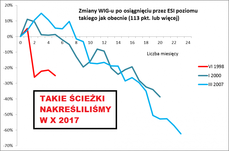 Przed ponad rokiem, na początku października 2017, w oparciu o historyczne zachowanie ESI nakreśliliśmy takie oto ścieżki dla WIG-u.