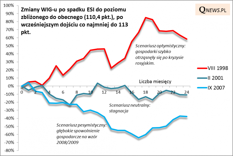 Co dalej? Odświeżmy projekcję. Zobaczmy co historycznie działo się po spadku ESI do poziomu zbliżonego do obecnego (110,4 pkt.).