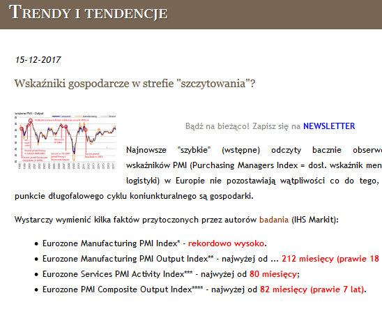 Nasi Czytelnicy wiedzą jednak, że o potencjalnym cyklicznym szczycie na horyzoncie pisaliśmy już ... ponad roku temu, analizując jeden z barometrów koniunktury gospodarczej: