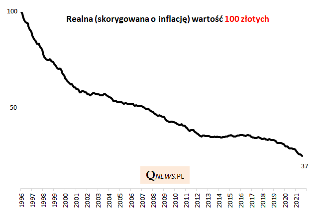 Im szybsza inflacja, tym szybsza utrata wartości nabywczej pieniądza. Przez ostatnie ćwierć wieku inflacja pożarła już 63% realnej wartości PLN. Historia dowodzi, że papierowy pieniądz jest skazany na nieustanną erozję...