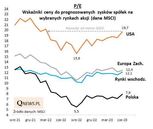 P/E ciągle dość nisko na GPW, ale dość wysoko w USA