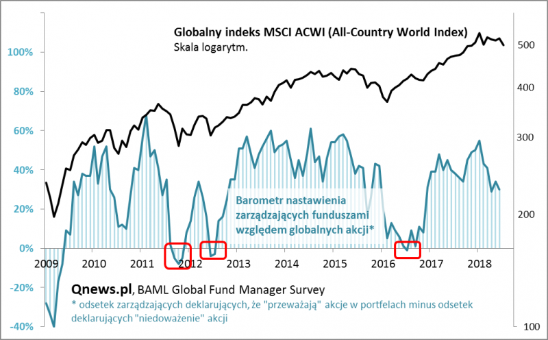 Być może po takim ewentualnym ruchu (który oczywiście nie jest przecież przesądzony) doszłoby wreszcie do "kapitulacji byków", takiej jak np. w połowie 2016 roku, w okolicach referendum ws. Brexit czy też po krachu w II poł. 2011 roku. Wtedy załamanie nastrojów - sygnalizowane np. przez globalny sondaż BAML - było paradoksalnie okazją do zakupów. Kto wie czy z takim scenariuszem nie należy się liczyć w dalszej części roku.