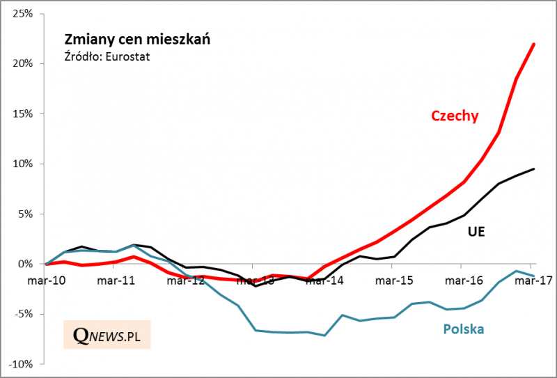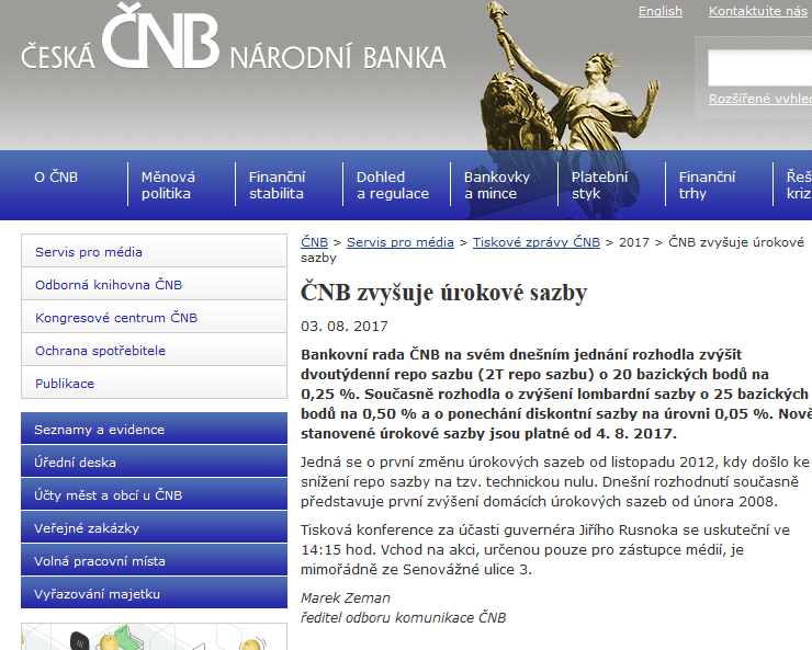 Dlaczego ČNB (Česká národní banka) zdecydował się "wyjść przed szereg"? Obawia się dalszego wzrostu inflacji pod wpływem wzrostu płac (Czechy mają najniższe bezrobocie w UE) oraz zbyt szybkiej zwyżki cen nieruchomości.