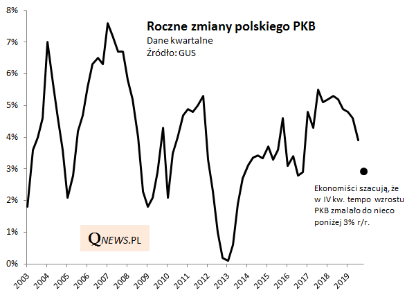 Ostatnie kwartały przyniosły wyraźne hamowanie tempa wzrostu polskiej gospodarki. Ekonomiści szacują wstępnie, że w IV kwartale gospodarka urosła o niecałe 3% (rok do roku), podczas gdy jeszcze na przestrzeni 2018 roku notowano tempo przekraczające 5%.