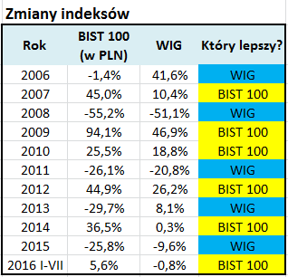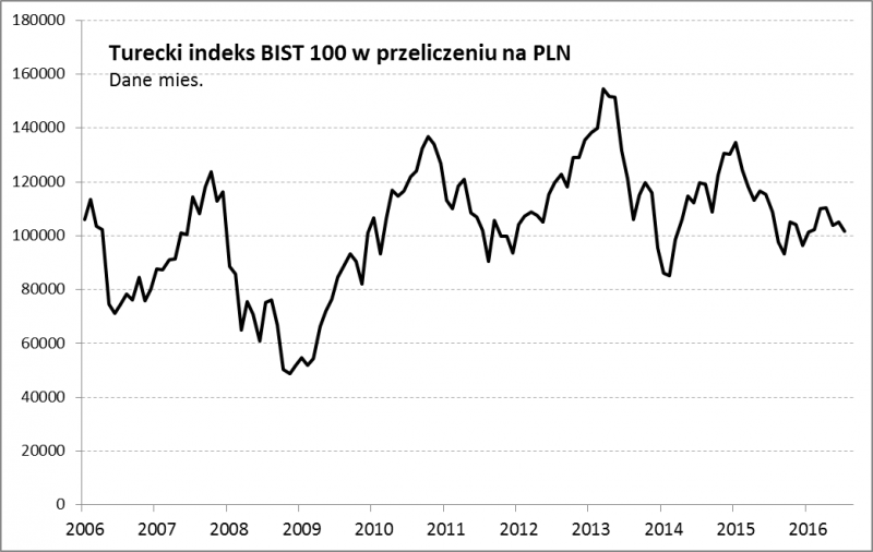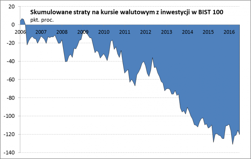 Niestety tureckie akcje wyglądają tak tylko z perspektywy tamtejszego inwestora. Z punktu widzenia np. polskich inwestorów kluczowe znaczenie mają wahania kursu waluty (liry tureckiej, TRY).
