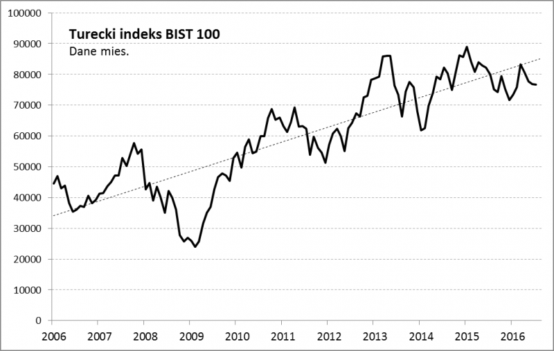 Na pierwszy rzut oka, mimo przejściowych wahań, indeks giełdy w Stambule jest w wieloletniej hossie. Ostatnio mamy po prostu kolejną korektę w ramach tej hossy.