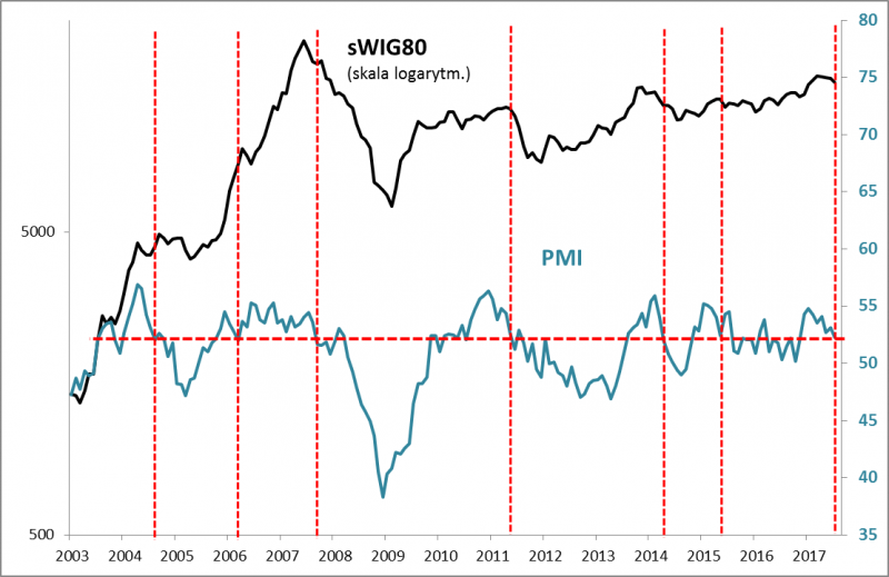 Niemniej warto zauważyć, że ten spadek PMI jest skorelowany ze wspomnianą mizerią na rynku małych spółek, które historycznie były segmentem najbardziej wrażliwym na wahania koniunktury (nawet te dość drobne).