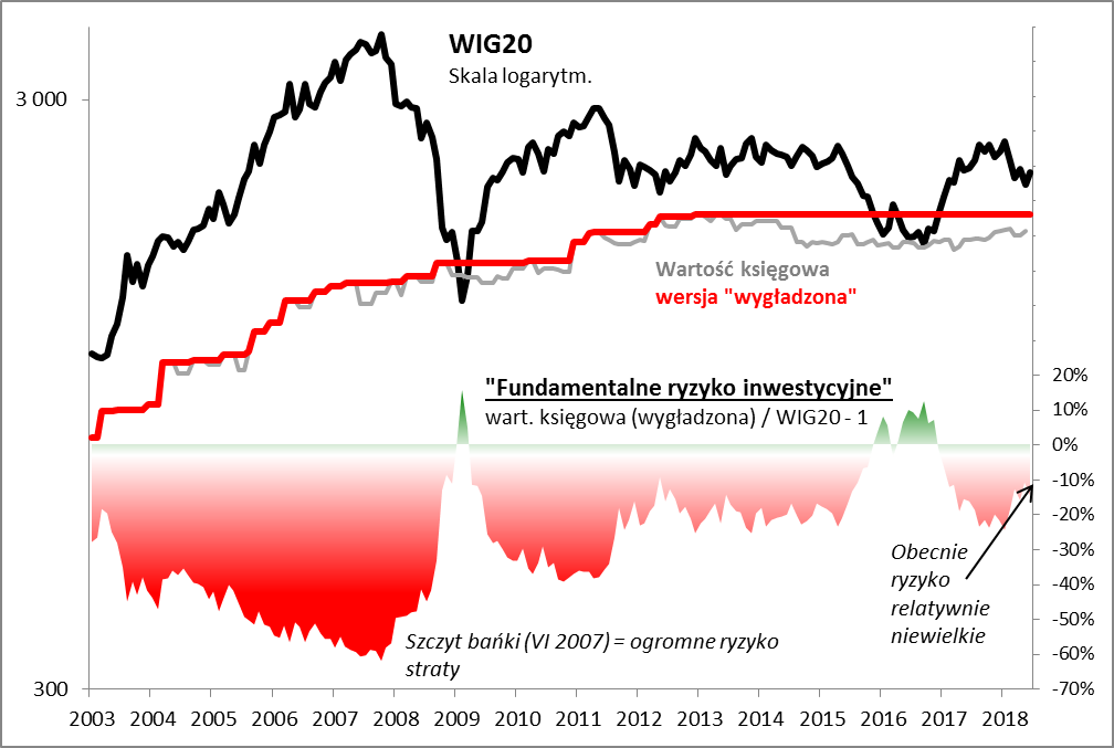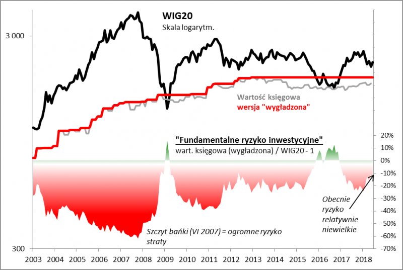 To ćwiczenie można by powtarzać dla różnych okresów i dla różnych indeksów. W każdym przypadku nasuwa się prosty wniosek. Dystans dzielący dany indeks GPW od jego wartości księgowej historycznie mówił sporo na temat tego, jakie mogły być późniejsze straty inwestorów, kiedy hossa zamieniła się w bessę.