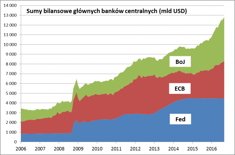Amerykański Fed często jest krytykowany za zbyt długie zwlekanie z zaostrzeniem polityki monetarnej, w m.in. w obawie przed nerwową reakcją rynków finansowych (złośliwi twierdzą, że bank jest „zakładnikiem” rynków). Takie zarzuty padały też w trakcie obecnej kampanii wyborczej w USA. Trzeba też jednak brać pod uwagę fakt, że gdyby Fed pospiesznie podnosił stopy procentowe, byłoby to działanie wbrew innym głównym bankom centralnym, takim jak EBC czy Bank Japonii, które ciągle agresywnie skupują obligacje. Efektem tych działań jest ujemna rentowność papierów skarbowych. Szybkie tempo podwyżek za oceanem mogłoby w tej sytuacji powodować gwałtowny przepływ kapitałów z tych rynków do USA, a to umocniłoby dolara, podkopując amerykański eksport. Nie tego chce z pewnością Fed. Być może jednak to zacznie się pomału zmieniać. W strefie euro wskaźnik rocznej inflacji zawędrował we wrześniu do poziomu najwyższego od dwóch lat. W kolejnych miesiącach kontynuacji tej tendencji będzie sprzyjała podnosząca się dynamika cen ropy naftowej i paliw. Kto wie zatem czy na początku 2017 r. Mario Draghi nie zasygnalizuje stopniowego wycofywania się z europejskiego QE – taki scenariusz ułatwiłby zadanie amerykańskim decydentom.