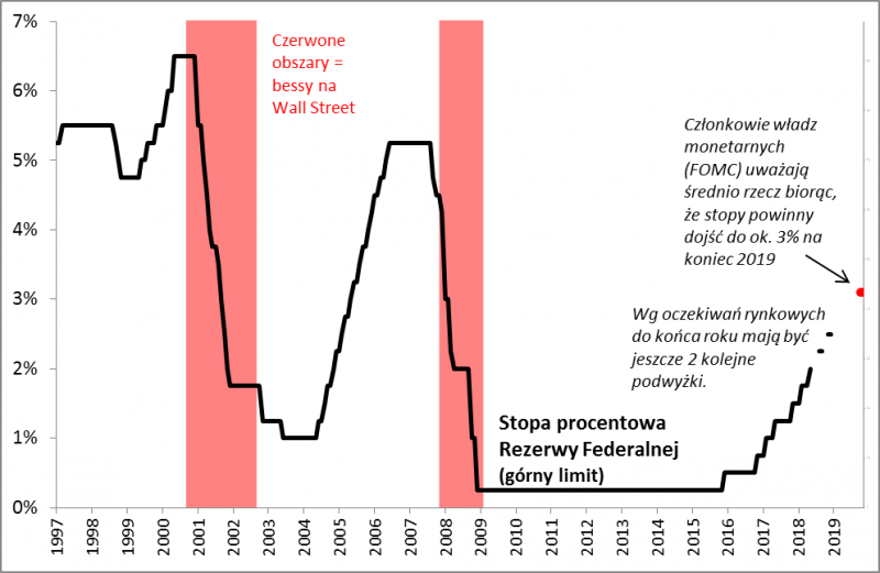 Amerykańska Rezerwa Federalna po raz siódmy w ostatnich latach podniosła stopy procentowe (do przedziału 1,75-2,0 proc.). Bez wątpienia zatem cykl podwyżek staje się coraz bardziej zaawansowany, a historia uczy, że poprzednie bessy na giełdach i globalne recesje miały miejsce właśnie po długotrwałych seriach podwyżek. Czas więc odświeżyć nasze rozważania na temat tego w jakim puncie owego monetarnego cyklu jesteśmy.