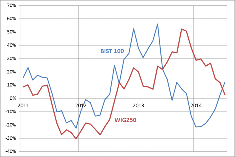 Kupuj gdy 12-miesięczne stopy zwrotu są ujemne i bądź ostrożny, gdy są na dużych plusach – takie reguły sprawdzały się w ostatnich latach zarówno na polskim, jak i np. tureckim rynku akcji.