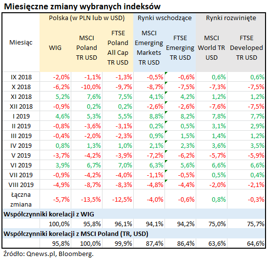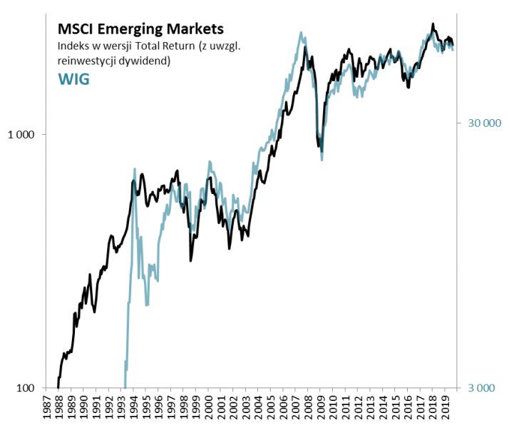 - WIG porusza się niezmiennie w rytmie MSCI Emerging Markets (w wersji Total Return);