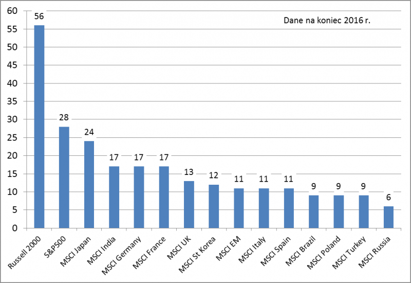 W przypadku amerykańskich akcji wskaźnik tylko potwierdza, że są bardzo drogie – P/E w tej wersji wynosi aż 28 (dane na koniec 2016). Dość drogie są też akcje japońskie (24). Ale tu niespodzianka – na tym lista przesadnie wycenionych rynków właściwie się kończy. Na giełdach Europy Zachodniej wyceny są o wiele rozsądniejsze. Ale i tak najlepiej sytuacja wygląda w przypadku wielu „zaniedbanych” w ostatnich latach przez inwestorów rynków wschodzących. Wśród nich jest też Polska, z P/E Shillera na poziomie 9 (!). Polskim akcjom nie brakuje pod tym względem wiele do rosyjskich czy tureckich.