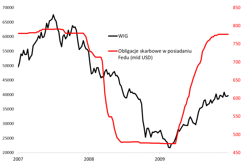 Pocieszające może być to, że z kolei za oceanem cykl podwyżek dopiero się rozpoczął. Ale pamiętajmy też jednocześnie, że Rezerwa Federalna prawdopodobnie na zbliżającym się wielkimi krokami majowym posiedzeniu ogłosi też inne oblicze zacieśniania monetarnego – rekordowo szybką redukcję portfela obligacji, m.in. skarbowych. Jeśli sięgniemy do historii, to okaże się, że dotychczasowa rekordowa szybka redukcja portfela papierów skarbowych miała miejsce między … jesienią 2007 i połową 2008 roku. Kolejne skojarzenie do naszej listy!