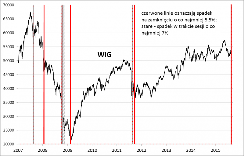 Poniedziałkowa panika sprawiła, że WIG na zamknięciu sesji był prawie 5,7% niżej niż w piątek. W trakcie sesji skala przeceny była jeszcze większa - wyniosła 7,3%. Sprawdziliśmy kiedy poprzednio inwestorzy mieli do czynienia z takimi atakami paniki.